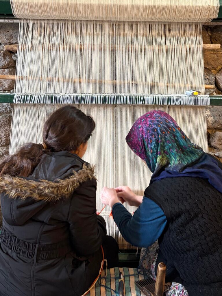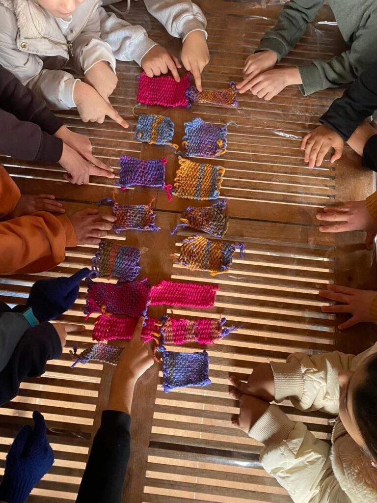 Çocukların çeşitli zihinsel ve fiziksel becerilerini geliştirmeye yönelik tasarladığımız atölyelerimiz kapsamında; birinci gün çiftlikten topladığımız doğal malzemeleri kullanarak kış mandalaları yaptık ve her adımını birlikte yapıp deneyimleyerek turşu kurduk. İkinci gün mozaik tekniği ile balıklar tasarladık, Çocuklar için Felsefe (P4C) yöntemi ile soruşturmalar yürüttük ve çocuk haklarını tartıştık. Üçüncü gün önce ipliklerle dokuma yapmayı öğrendik, sonra Arkeolog ve Antropolog Dr. Ayşe Taşkıran çiftliğe konuk olarak geldi ve çocuklarla bir arkeoloji atölyesi gerçekleştirdi. Atölyenin ardından ise gönüllüler olarak Ayşe hocamızın açık ders niteliğindeki sohbetiyle günü tamamladık. Dördüncü günümüze de kilim dokuma tekniği ile dokuma yaparak başlayıp çocuklarla başlangıç düzeyinde dokuma yapmayı öğrenmemizin ardından hep birlikte Bektaş Köyü Kadın Kooperatifi’ne misafir olup dokuma atölyelerini ziyaret ettik. Kış sahamızın en besleyici deneyimi, kültürel miras ve geleneksel dokuma yöntemlerini çocuklar ve kooperatifteki kadınlarla birlikte bizzat deneyimleyerek keşfetmek oldu. Beşinci ve son günümüzde de yine el becerileri ve yaratıcı düşünmeyi ön planda tuttuk. Geleneksel masalların sonlarını değiştirerek yaratıcı drama ile sergiledik ve iplerle el işi süsler tasarladık.