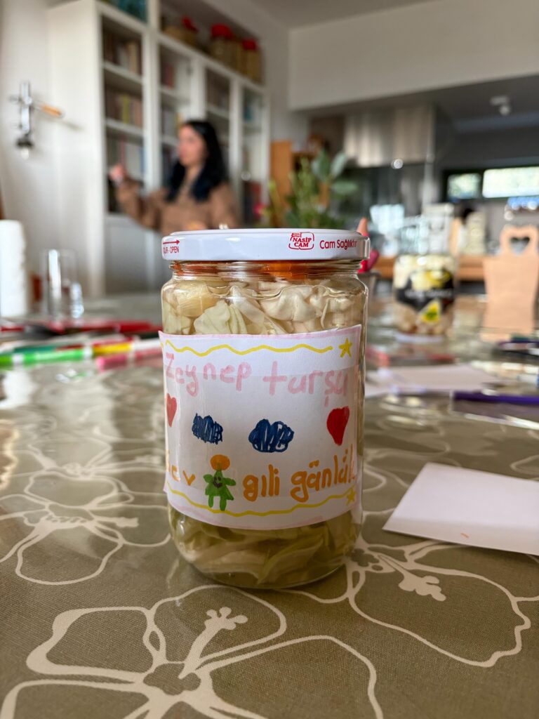 Saha boyunca, çocuklarla birlikte her gün o güne dair birer sayfa dolusu yazıp çizdik. Saha sonunda, tüm bu sayfaları bir araya getirip, her birimize ait birer defter oluşturduk. Böylece burada deneyimlediklerimiz, öğrendiklerimiz ve biriktirdiğimiz anılar bizimle kalmaya devam edecek. Ayrıca, yine saha boyunca, atölyelerimizi yürüttüğümüz mekanda her an ve kolayca ulaşılabilir konumda bir Paylaşım Kutusu bulundurduk. Çocuklar fikirlerini, isteklerini, düşüncelerini, gönüllülerimize ve topluluğumuza iletmek istedikleri tüm mesajları ister imzalı isterse anonim şekilde yazıp bu kutuya attılar. Her gün sonunda, gönüllüler olarak kutudaki mesajları okuyup değerlendirdik ve ertesi günü bu değerlendirmeler ışığında planladık.